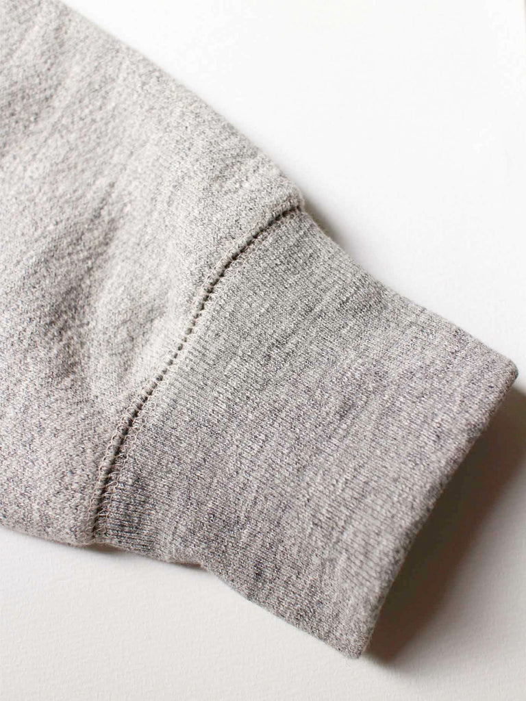 The GG Sweat Crewneck Fabric is made from No.10 for the front yarn and thick No.7 for the back yarn, giving it a substantial and heavyweight feel. GG, refers to material with a highly grainy pattern. The grainy texture is the result of using coarse, decoratively twisted threads for the outer yarn. To ensure this item can be worn for a long time, the seams have been reinforced with flatseam stitch, it is also comfortable structure.